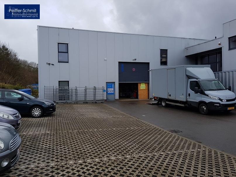 Hall faisant 235m2, et 120m2 de bureaux au premier étage, et 8 parkings double profondeur, pour 16 voitures, situé dans la Zone artisanale Kaercherwee à Steinfort.Accès Autoroute A6 à 3 Km